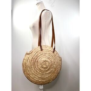 Woven Grass Tote Circle Handmade Summer Beach Bag Natural Straw Maxi