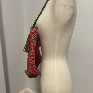 Woven Handmade Multicolor Boho Vegan Leather Trim Tote Bag