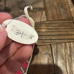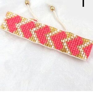 Woven Heart Bracelet NWT. Coral beaded heart bracelet is adjustable and fits all sizes wrists. Stacks great with other bracelets. Coral Pink, white and gold beads