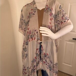 Woven Heart Floral Kimono Boho Top Open-front Cover Up Wrap Metallic Accent one size in good condition.