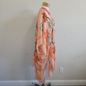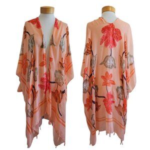 Woven Heart Floral Metallic Peach Lightweight Side Slit Kimono Swim Cover Up 2X