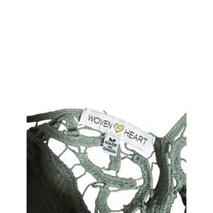 Sheer mint green kimono duster by Woven Heart, size Medium. Features intricate crochet lace trim and mandala-style embroidery throughout. The lightweight, flowy fit makes this the ultimate layering piece for concerts, Burning Man, or Stevie Nicks-inspired festival looks. Throw it over cutoffs and a bralette or a vintage slip dress. Ideal for summer nights, beach days, or layering during transitional seasons.