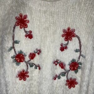 Woven Heart Pullover Long Sleeve Red Flower Embroidered Sweater Small