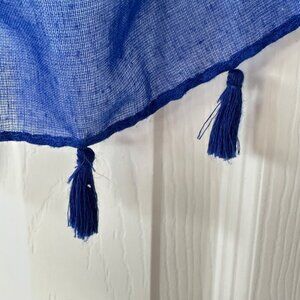 Woven Heart Sheer Duster Flowy Sheer Fringe Blue White Arm Holes One Size EUC - resort wear - vacation - excellent used condition