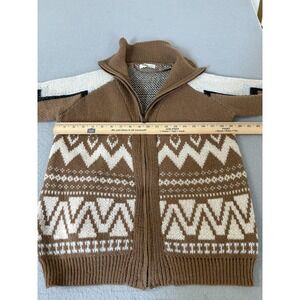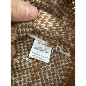 Woven Heart Sweater Womens XS Brown White Full Zip Fair Isle Pattern Polyester Knit