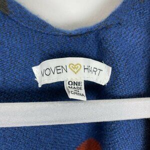 Woven Heart Western style Poncho Ruana Wearable Blanket Shawl Wrap Color Block.