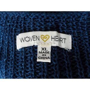 Woven Heart Women XL Blue Sweater V-Neck Front Twist Knot Loose Knit Long Sleeve
