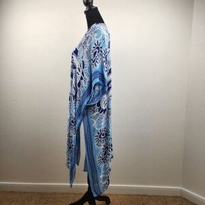 Woven Heart Women's Open Front Kimono One Size Boho Festival Blue Pool Beach