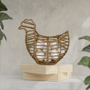 Adorable open weave hen basket. Perfect kitchen decor, use it to hold real or decorative eggs, or any other items you would like.