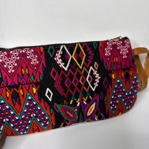 Woven + Hyde Embroidered Colorful Leather Wristlet Clutch Boho Hand Crafted