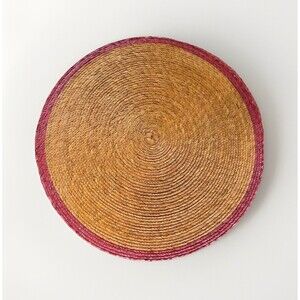 Woven Jute Sisal Raffia 16” Natural Red Trim VTG Boho Cottage Placemats Set (8)