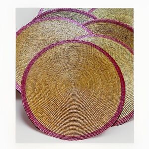 VINTAGE PLACEMATS Set of 8 in Jute/Sisal Woven 16 Round Natural Color with Red Trim