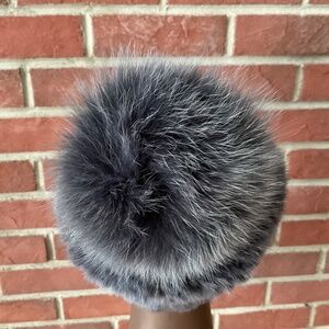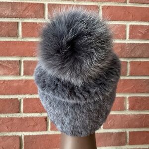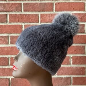 Woven , knit, stretch grey genuine mink hat with Pom.Incredibly soft and cozy.