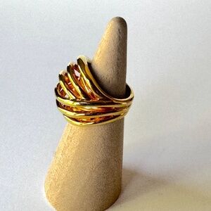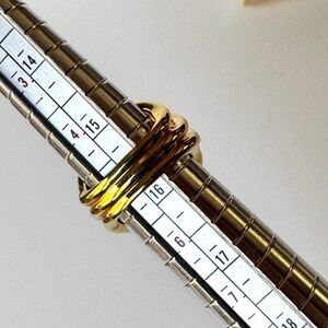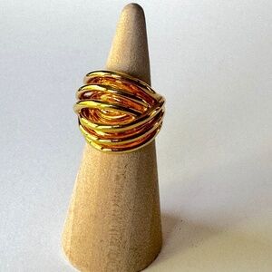 EUC. This vintage 90's statement ring has a woven outer design with a comfortably smooth interior. Size is approx. US 5; please see photo with the ring on the mandrel. The metal is not marked and is not attracted to a magnet. The finish has some light wear from age and use, but overall is in excellent pre-owned condition.