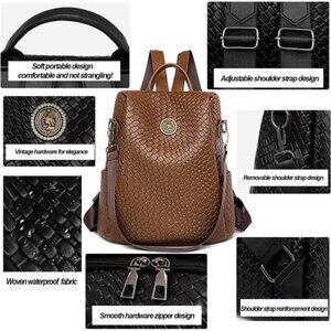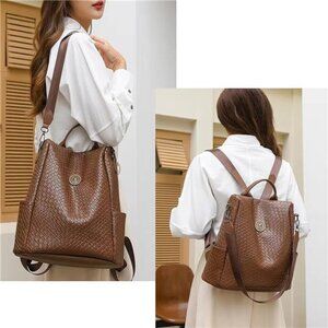Woven Leather Backpack Purse for Women Waterproof Anti-theft Multipurpose