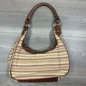 Woven Metallic Accent Shoulder Bag with Faux Leather Trim & Tassel Boho Summer