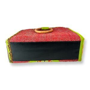 Woven Multicolored Dashiki And Jute Wooden Top Handle Bag
