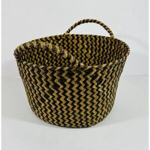 Woven Nantucket Style Basket Round Handles Handmade Home Decor Coastal Tan Black