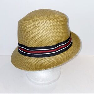 Woven Paper Fedora Tan With Red/White/Blue Ribbon Trim M/L