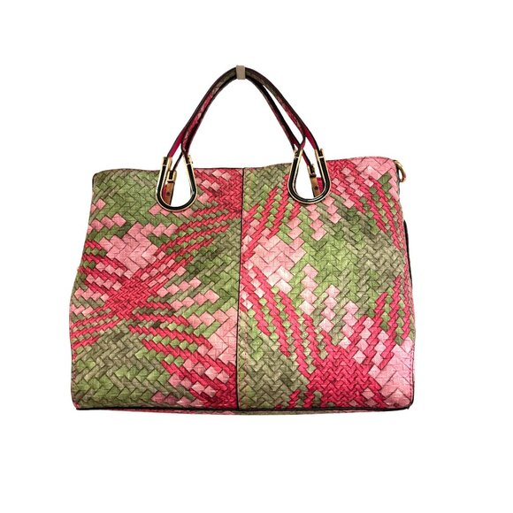 Woven Pink & Green Tote Bag, Adjustable Detachable Strap, Casual/Professional