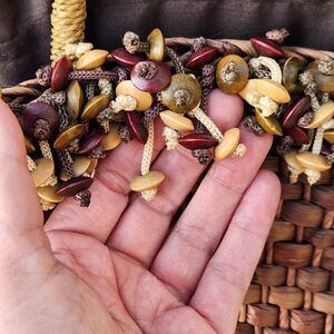 Woven Rafia Beaded Womens Med Totebag Boho Beach Vibe Earth Tone Nautre Inspired