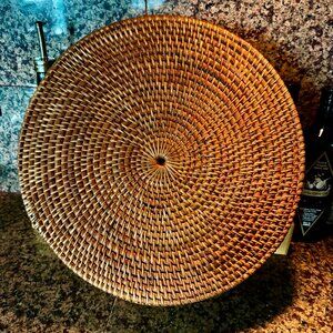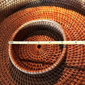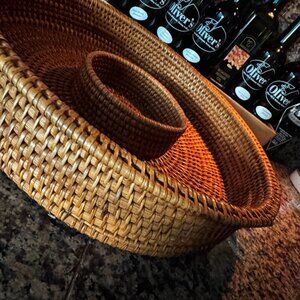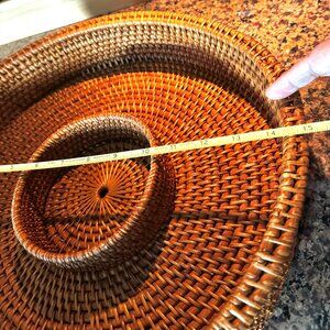 Woven Rattan Chip & Dip Server Charger 15" William Sonoma. Pre-owned item in good condition, has some wear as you'd expect from a used item. Slight imperfections due to use and age. Please use the zoom feature to determine shape and condition, check all pictures and measurements carefully for detailed viewing as they are part of the description and help you with your purchase. I invite you to always check my new listings, buy with confidence. Smoke free home. Thank you, have a wonderful day!!