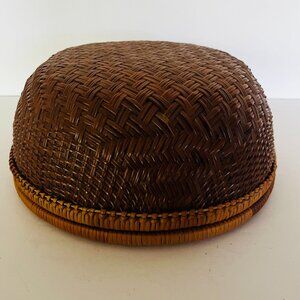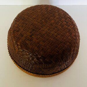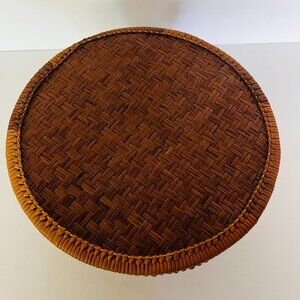 Woven Rattan Round 10.25" D Wicker Basket Round Brown with Flat Top Lid Boho. Pre-owned item in good condition, has some wear as you'd expect from a used item. Please use the zoom feature to determine shape and condition, check all pictures and measurements carefully for detailed viewing as they are part of the description and help you with your purchase. I invite you to always check my new listings, buy with confidence. Smoke free home. Thank you, have a wonderful day!!