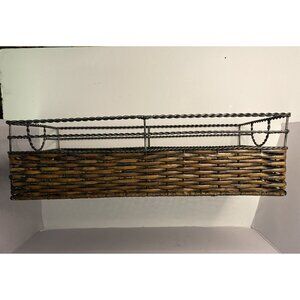 Woven Rectangular Wicker Rattan Basket Handles Metal Frame Organizer