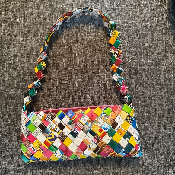 Woven Recycled Bubble Gum Candy Wrapper Multicolored Purse