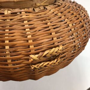 Woven Round Basket Wooden Carved Cat On Top/Lid Boho Style Wicker Basket Style