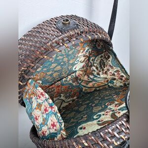 Woven Round Rattan Bag Wicker Straw Purse Crossbody Brown Tropical Boho