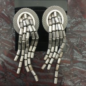 Beautifully woven clip on earrings with dangled beads at the bottom!