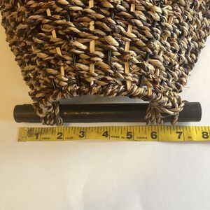 Woven Straw Baskets Oval Wood Handles Brown Nesting Set Of 3 Table Wall Rustic Reinforced Metal