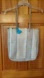 Soft straw woven tote bag perfect for beach, pool, vacation, travel, summer. Neutral beige and tan with teal and yellow woven in. Fishtail braided shoulder straps. Roomy interior. Fringe around top. Approx 13.5in L x 12in W x 3inD. Strap fall approx 11in.