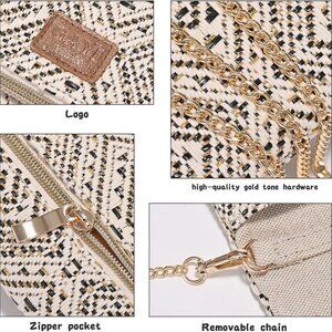 Woven Straw Clutch Purses for Women Crossbody Foldover Beach Bag Summer