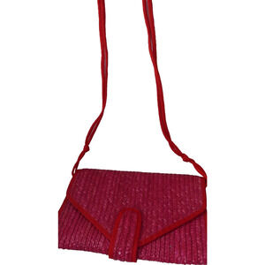 Woven Straw Clutch Snap Front Handbag Vintage Red Strap Crossbody Envelope
