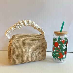 Woven Straw Crossbody Bag & Orange Fruit 20 oz Straw Cup w/ Lid