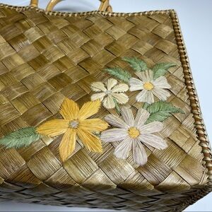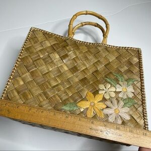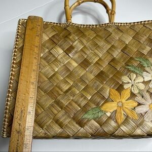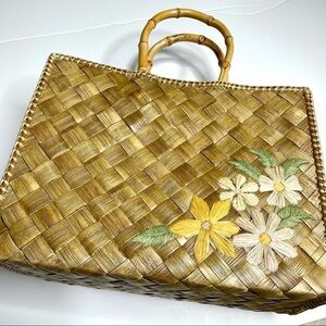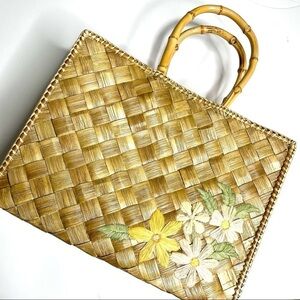 Woven Straw bag with Flowers & Bamboo Handles Pink drawstring bag built in! Perfect for vacation!
