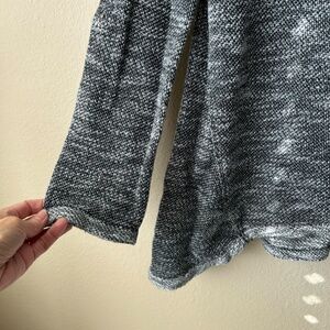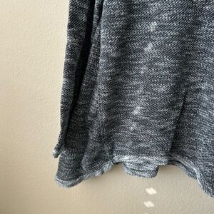 Woven Top Long Sleeve Cowl Neck Drawstring Black Gray White Light Weave XSmall