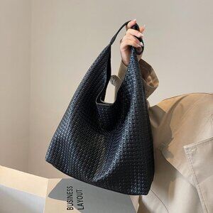 Woven Tote Bag Vegan Leather Large Capacity Shoulder Handbag for Women