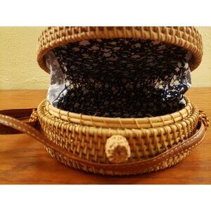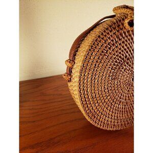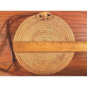 Woven Wicker Handbag Rattan Round Crossbody Purse Vintage Boho. Condition is Pre-owned. Shipped with USPS Ground Advantage.