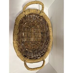 Woven Wicker Rattan Egg Gathering Basket Woven Rope Handle & Edge, Farmhouse