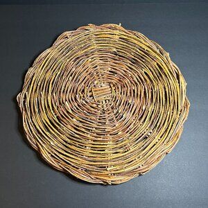 Selling a Woven Wicker Rattan Multi-Color Striped Food Cover and Base. It measures 13" (w) x 6" (h), and it has a built-in handle. It's beautifully made, and in Great Condition!