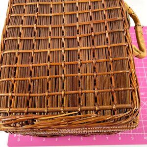 Woven Wicker Rattan Square Suitcase Handbag Picnic Basket Storage Leather VTG