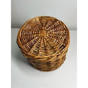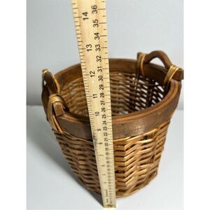 Woven Wicker Straw Basket Lacquered 2 Wooden Handles & Wood Edge