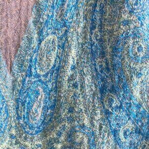 Gorgeous light and faded colors: blue, yellow, peach, green & tan paisley