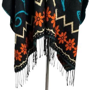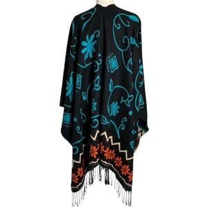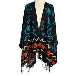 Woven Wool Wrap Shawl Poncho Reversible Southwest Design One Size
