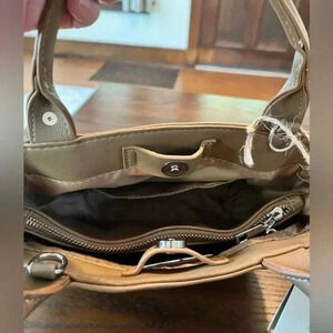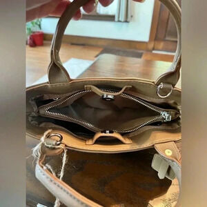 Woven crossbody/handbag, stone color vegan leather, adjustable strap, NWT