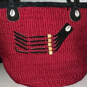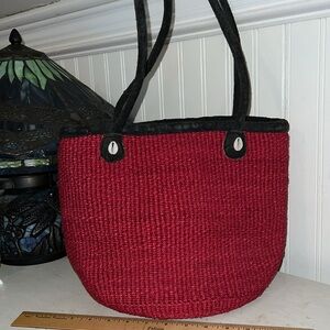 Woven handmade rattan & suede leather bag purse