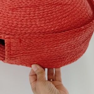 Woven red circular shoulder bag purse magnetic closure unbranded